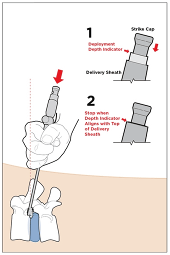 В случае, когда размер Баррикада подобран, осуществляется его введение в межпозвонковый диск под рентгеновским контролем. Рис.6.