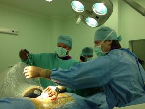 | Выполнение бипортальной эндоскопической операции с использованием технологии "Joimax" (Германия). |