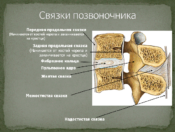 Рис. 5. Связки позвоночника (пояснично-двигательный сегмент). |