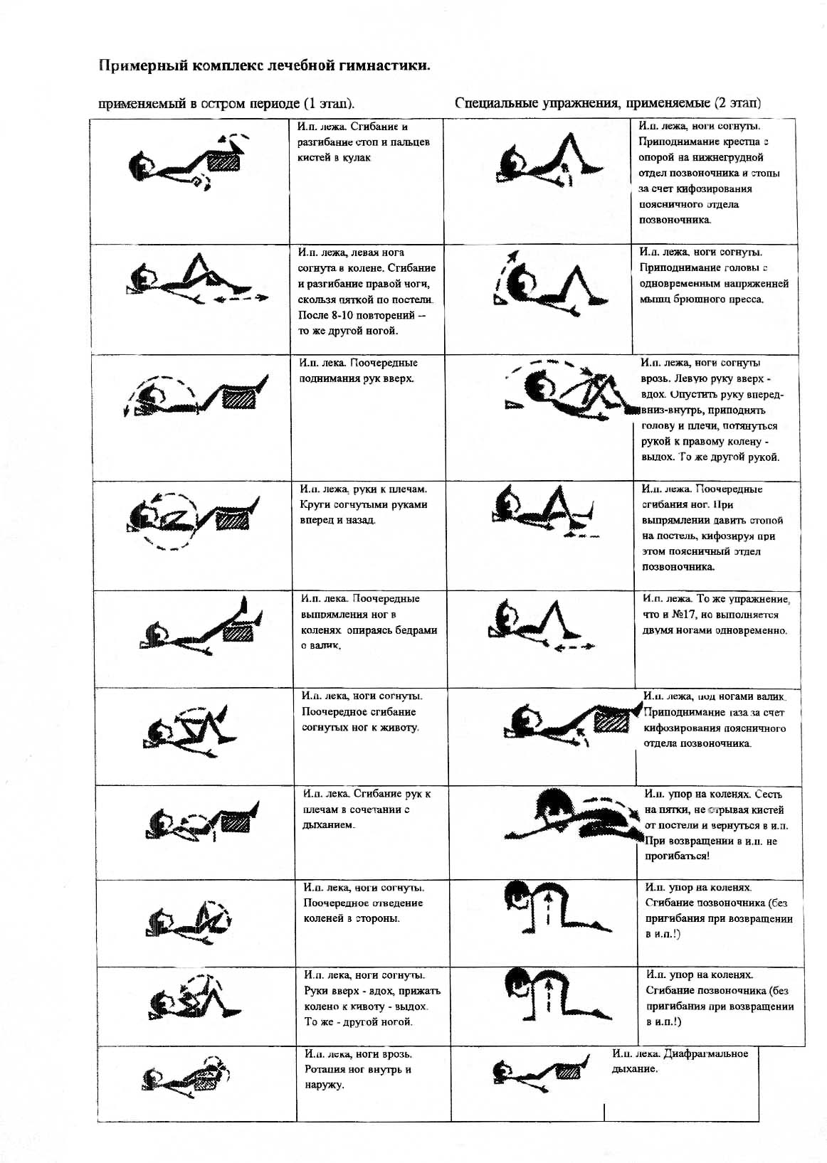 - Первый комплекс состоит из более легких упражнений, которые следует выполнять на начальном этапе или при обострении болей.